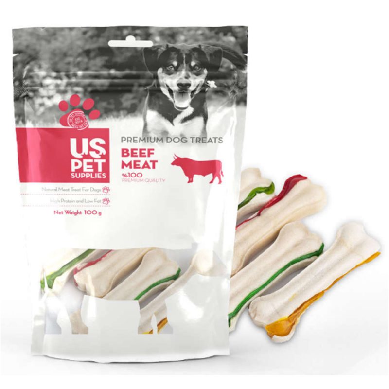 تشویقی سگ مدل استخوان دوطرف رنگ متوسط با طعم گوشت گوساله USpet