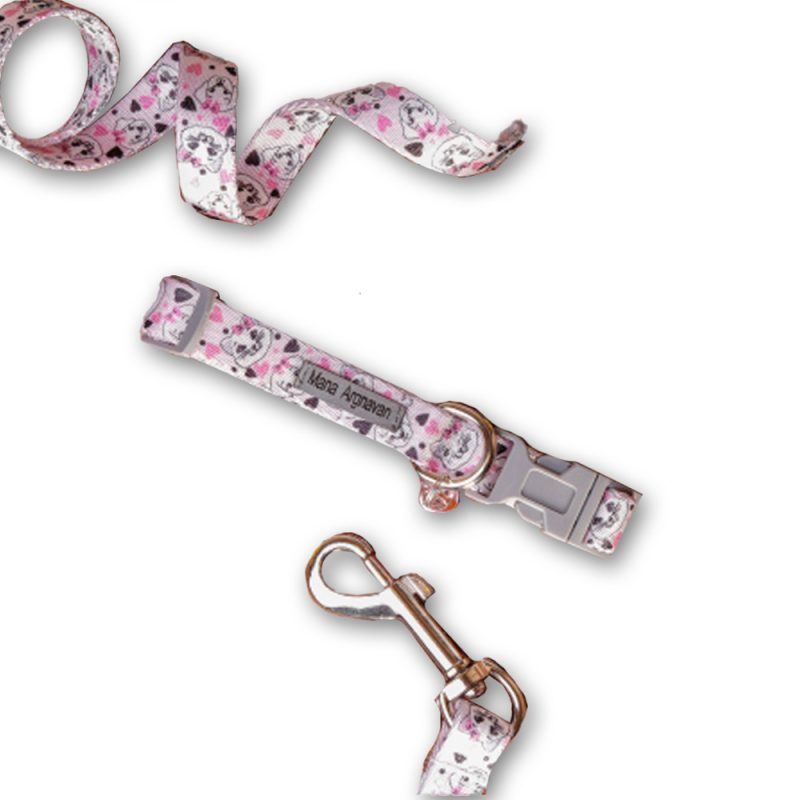 ست قلاده گردنی+لید طرح Catdog مانا ارغوان
