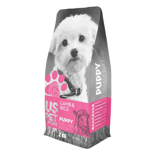 غذای خشک توله سگ نژاد کوچک یو اس پت حاوی گوشت بره و برنج