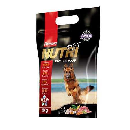 غذای خشک سگ نوتری پت 29 ٪ پروتئین با طعم مرغ (Nutripet 29% Protein Dry Dog Food With Chicken)، این غذای خشک سگ از ترکیب گوشت مرغ و جگر گوساله تهیه شده است و دارای ۲۹ درصد پروتئین میباشد. این غذای سگ به صورت اختصاصی برای سگهای بالغ طراحی و تولید شده و بسیار لذت و خوش خوراک میباشد. برای سگ های بد غذا و حساس، این غذای خشک می تواند پیشنهاد مناسبی باشد، زیرا به علت درصد بالای پروتئین نیازهای تغذیهای آن ها را تامین کرده و به حفظ وزن ایدهآل در آنها کمک میکند.