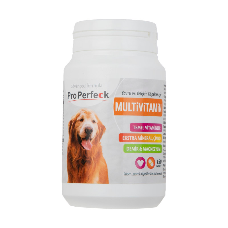 قرص مولتی ویتامین سگ پروپرفک یک ترکیب کامل و منظم از ویتامین ها، مواد معدنی، زینک، منیزیم و غیره برای حمایت از رشد سالم و مقاومت در برابر بیماری ها در سگ های بالغ و توله ها می باشد. ویتامین A سبب کاهش خشکی، سفتی و خارشی که ممکن است روی پوست دوست پشمالوی شما ایجاد شود کمک کرده و از وی در برابر بیماری ها و اثرات مضر مواد شیمیایی محافظت میکند. ویتامین E به حفاظت در برابر بسیاری از بیماری ها و اختلالاتی مانند بیماری های قلبی و عروقی، بینایی و عصبی که ناشی از افزایش سن و بیماری های مرتبط با استرس هستند کمک میکند. ویتامین B۹ فولیک اسید ویتامینی است که سگ ها به خصوص در زمان بارداری به آن نیاز دارند که اگر به صورت منظم در دوره قبل از بارداری مصرف شود به رشد سالم فرزند درون رحم مادرش کمک خواهد کرد. ویتامین B۵ پانتوتنیک اسید یک ویتامین ضد استرس است. پت ما اگر به مقدار کافی ویتامین B۵ دریافت نکند نمیتواند با عفونت ها مبارزه کند. ویتامین H بیوتین ویتامین بسیار مهمی است که به یکی از مهم ترین نگرانی های دوست داران حیوانات یعنی ریزش مو کمک میکند. بیوتین به پت شما کمک خواهد کرد تا پوشش خود را سالم، براق، شگفت انگیز و به دور از ریزش مو نگه دارد.